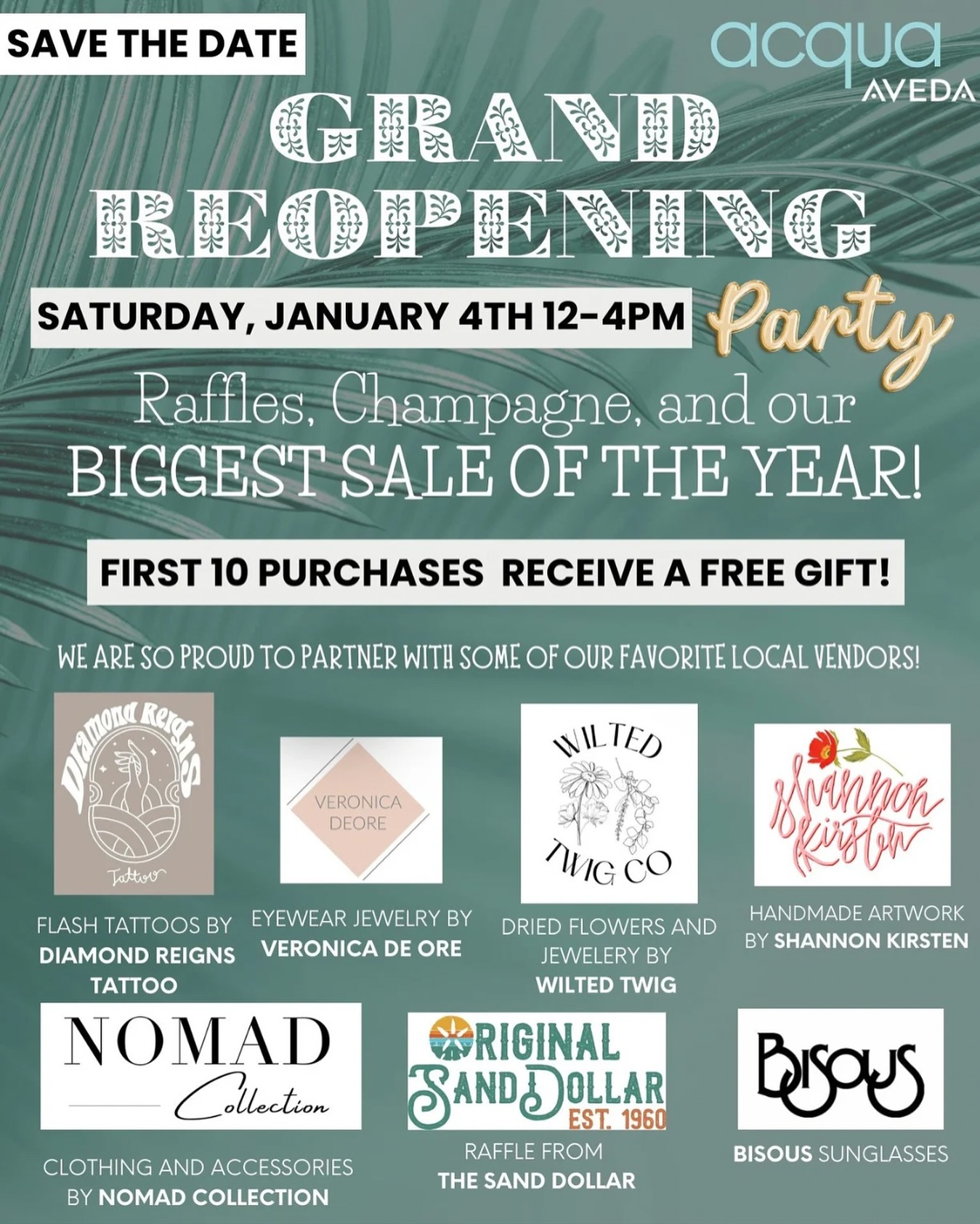 Join us for the grand reopening of Acqua Aveda Salon, Spa, and Store!